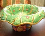 Vintage Retired handpainted 1994 footed bowl FITZ FLOYD Christmas Tree Stars Candy Dish Bowl very good condition, some light surface scratches commensurate with age, no original box, 4 1/2" tall by 9" diam [a4rack11grey81]
