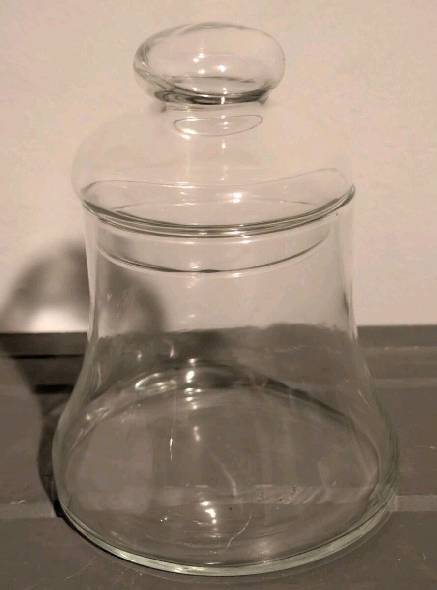 - Vintage Christmas Bell Shaped Clear Glass Apothecary Candy Treat Jar 5.75”