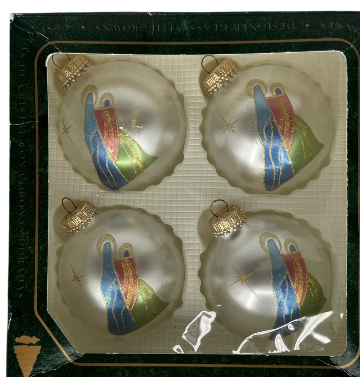 Vintage Christmas By Krebs Ornaments Pearlized Mary & Jesus Set of 4 Nativity