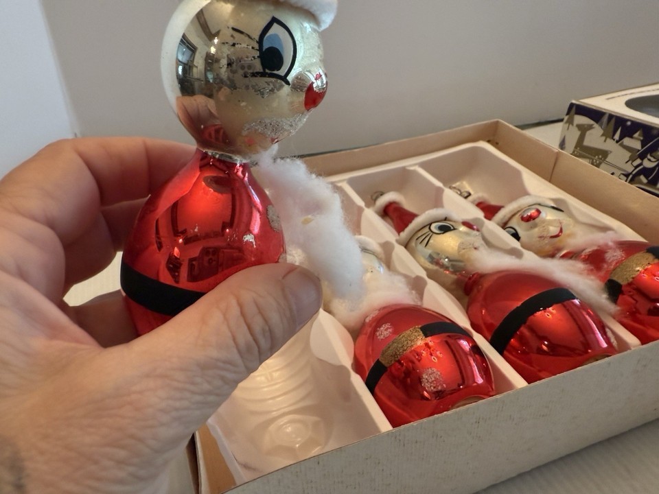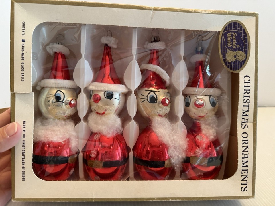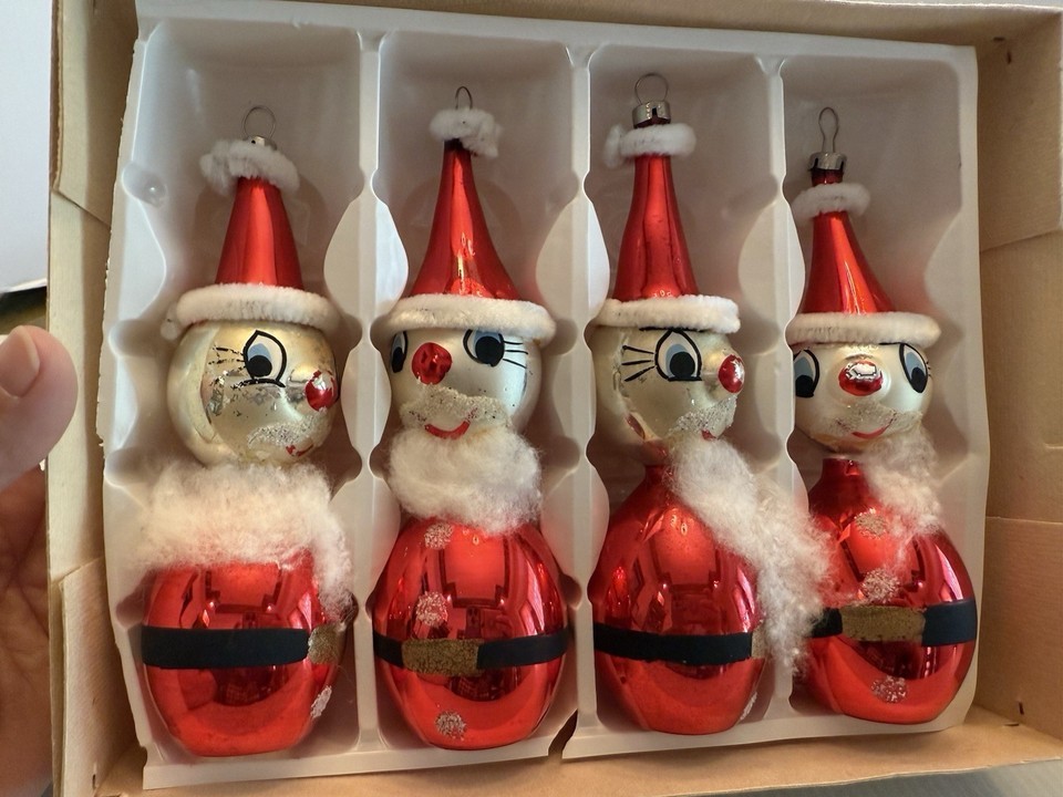 - Vintage Christmas Ornament Blown Glass Santa Cotton Beard Set of 4pc