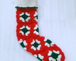 - Vintage Christmas Stocking Crocheted red green white patchwork granny handmade