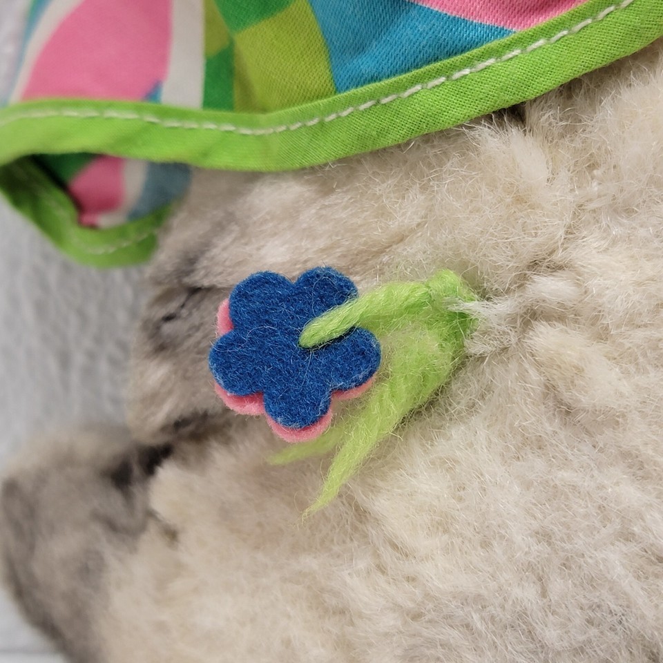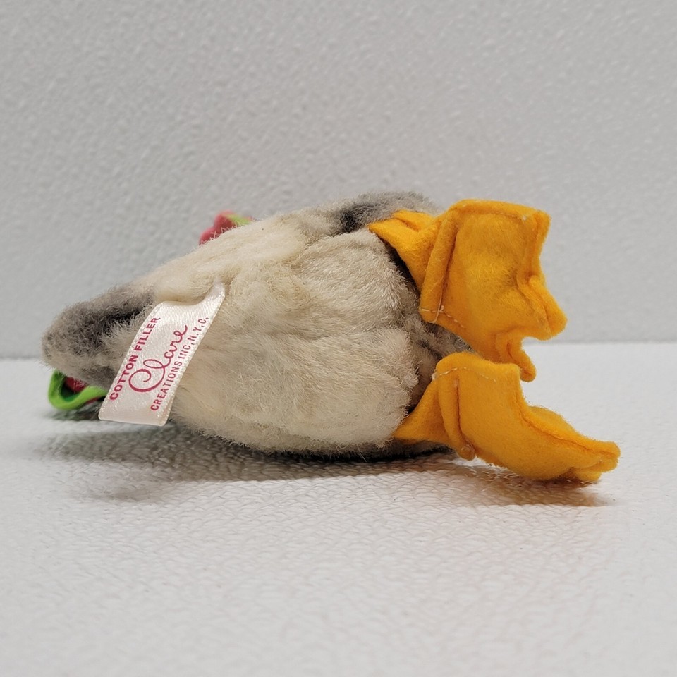 RARE Vintage Clare Creations Inc N.Y.C. Plush Gray White Goose Duck with Bonnet Flowers and Bells in Feet. Images show actual plush that will ship.