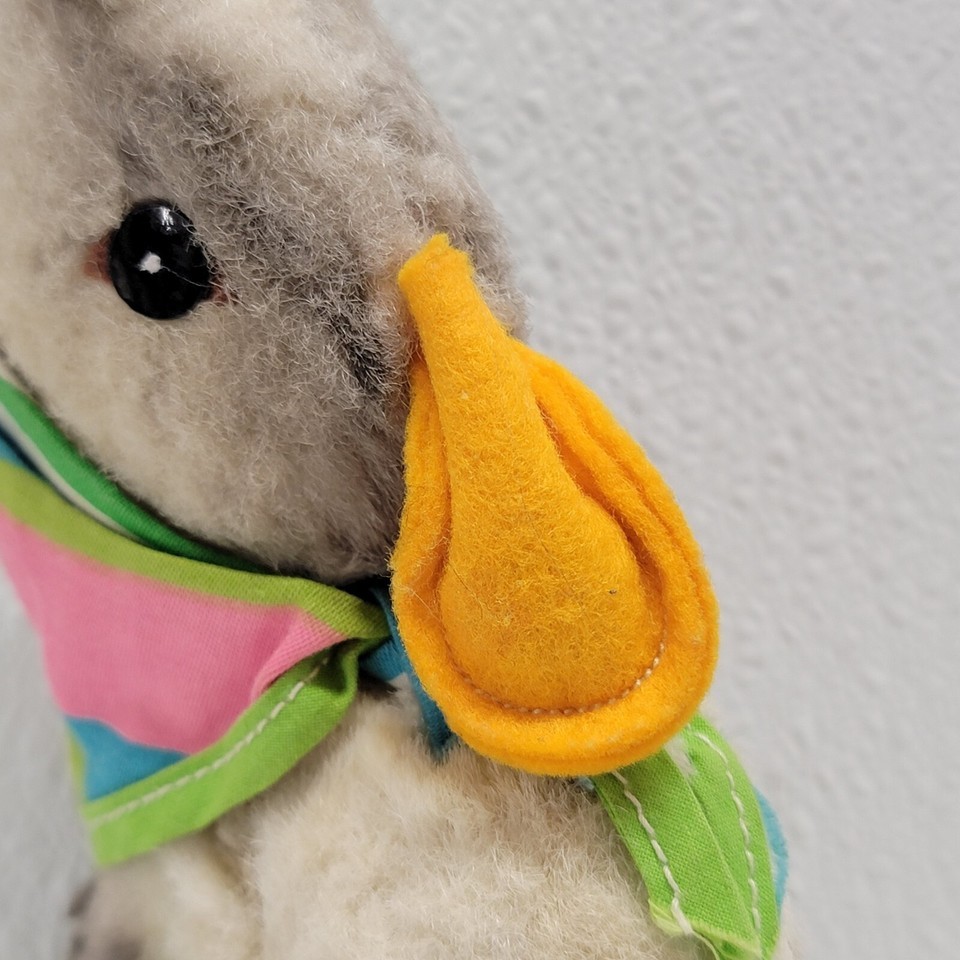 - Vintage Clare Creations Plush Gray White Goose Duck Bonnet Flowers Bells In Feet