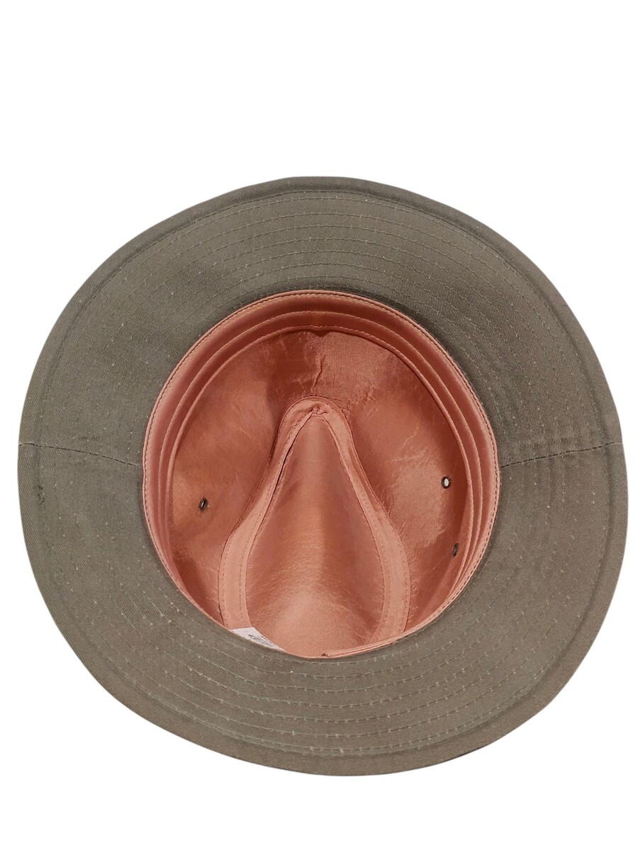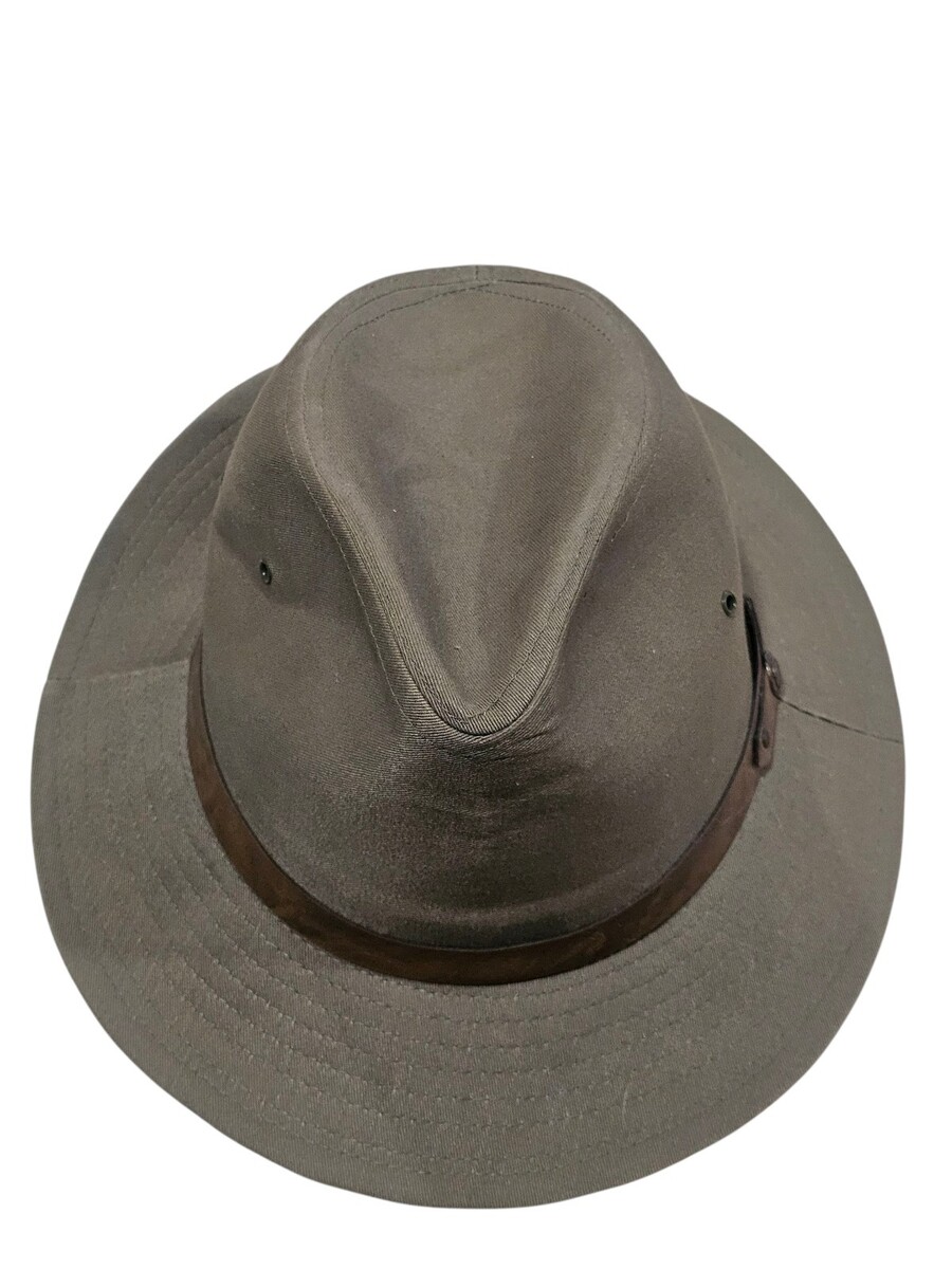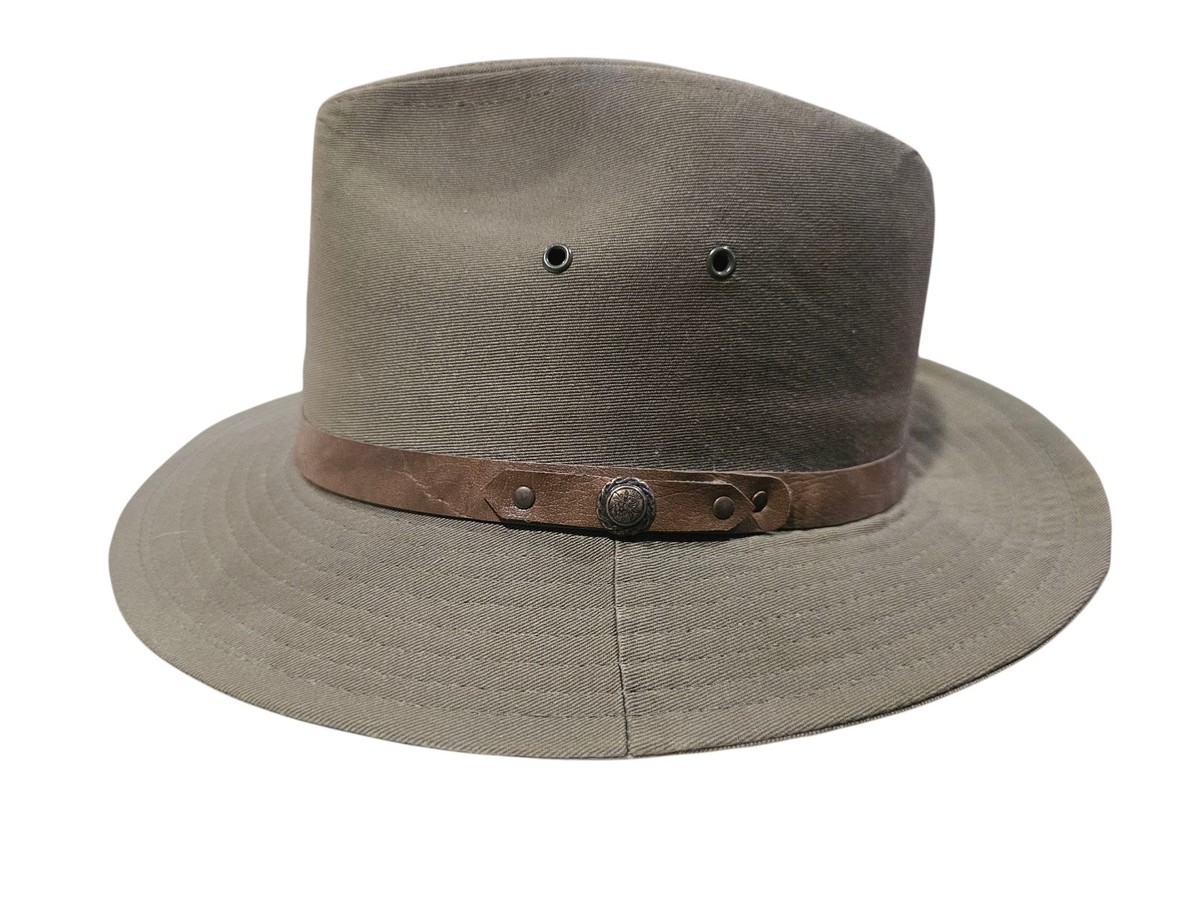 - Vintage Classic Canvas Safari Fedora Leather Band Olive Green Sz Large Made USA
