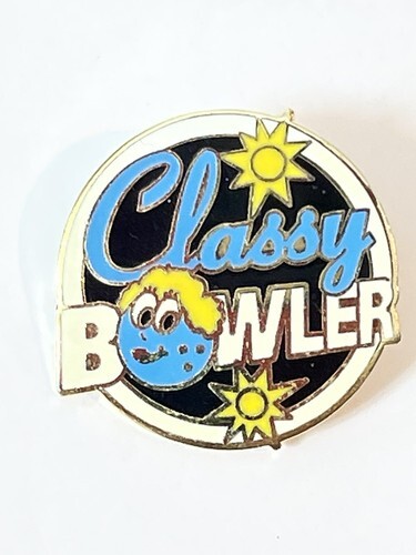 - Vintage Classy Bowler Womens Bowling Lapel Pin 1” Inch Round Cursive