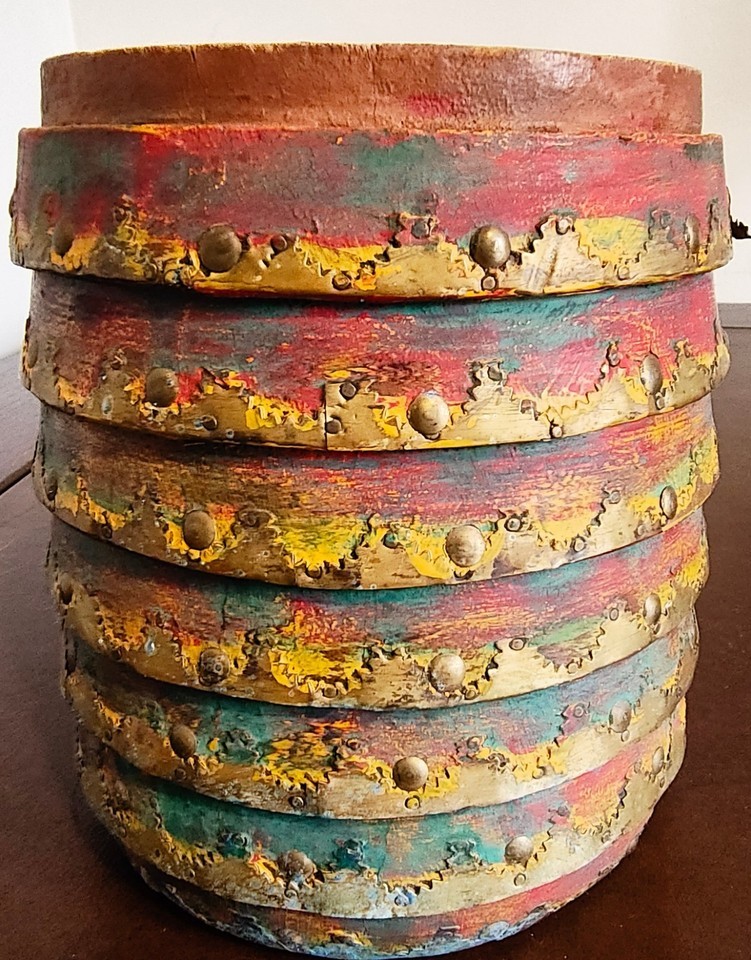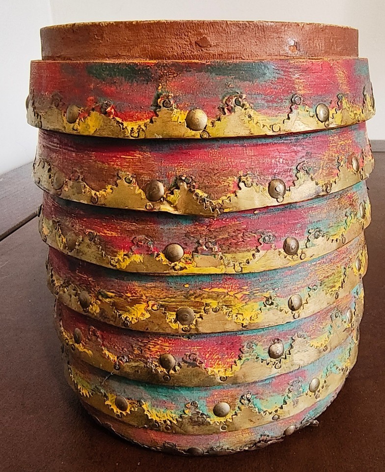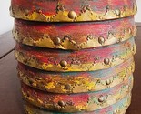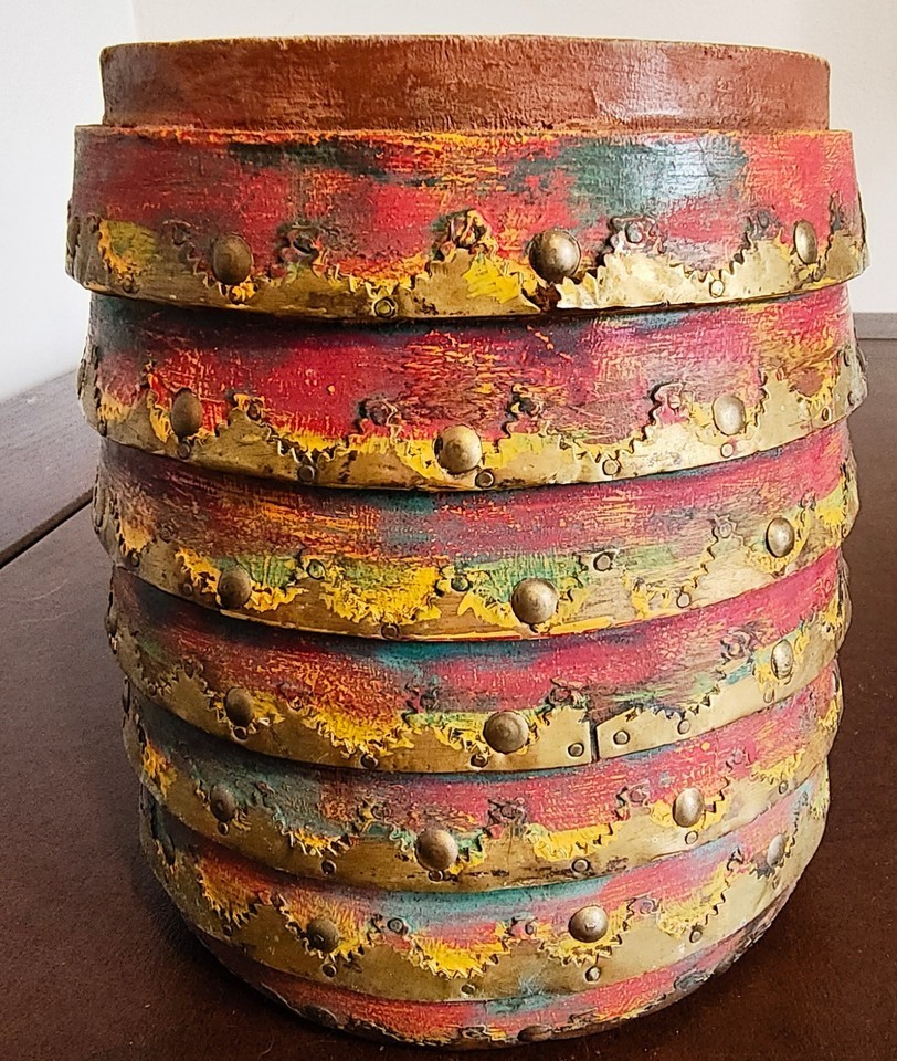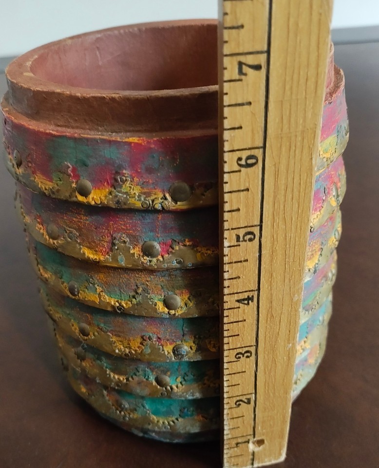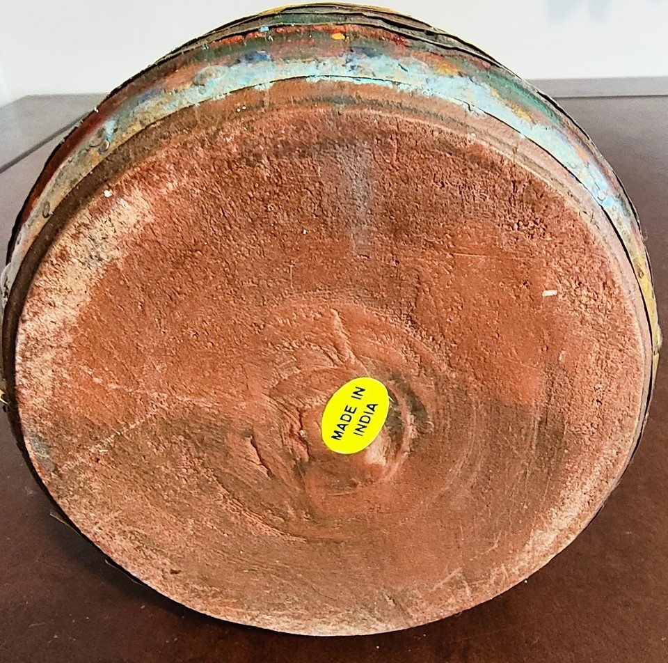 Vintage Clay Pottery Planter Terracotta Flower Pot ribbed metal accents India