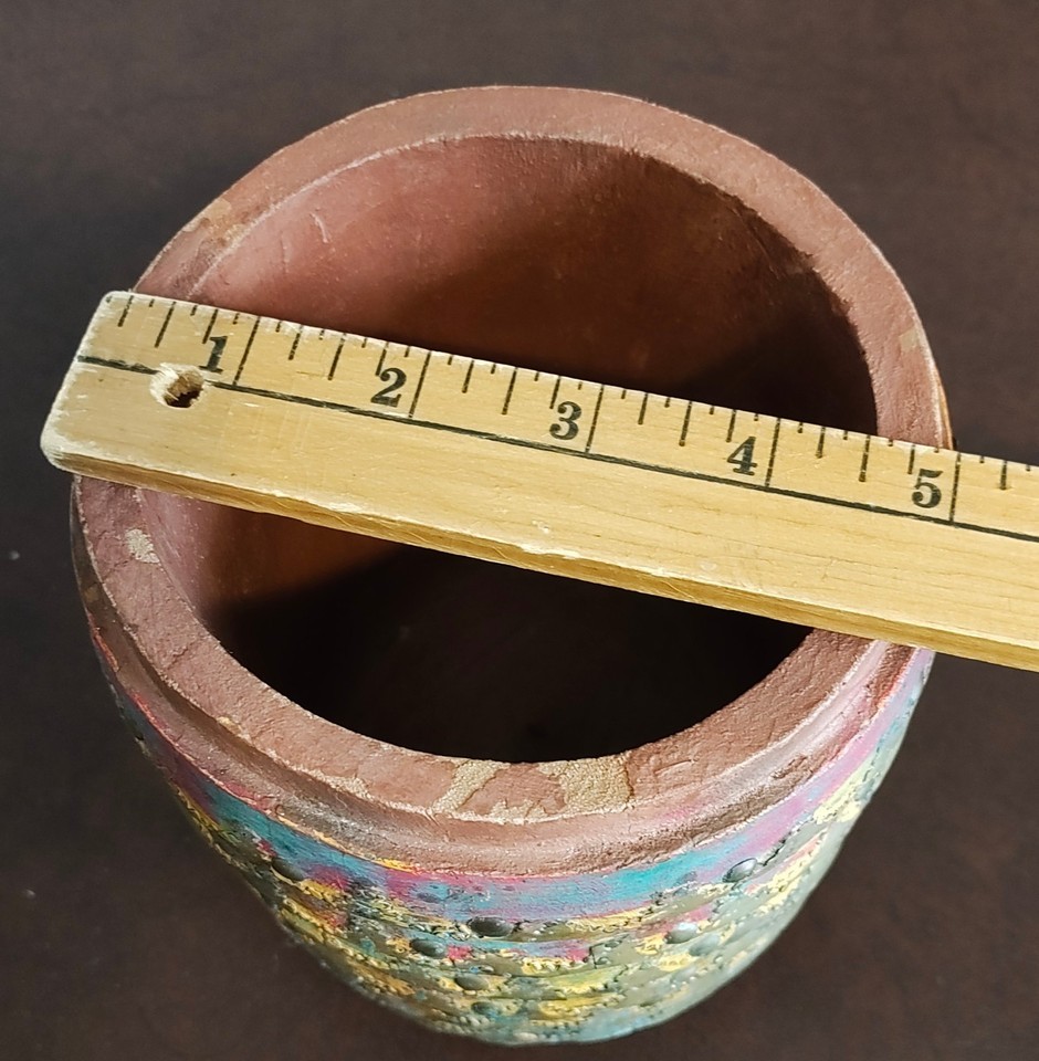 - Vintage Clay Pottery Planter Terracotta Flower Pot ribbed metal accents India