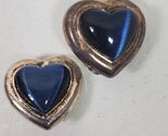 - Vintage Clip Earrings Hearts Blue w/ Silver Tone Edge .75 Inch