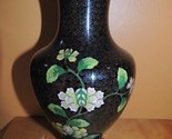 - Vintage Cloisonne 9+" Vase Copper Enamel Stone Black floral Antique China
