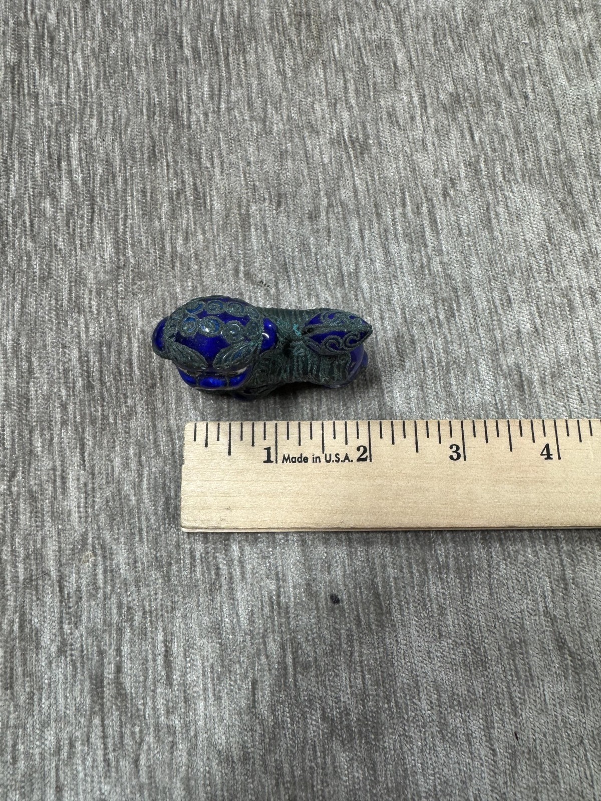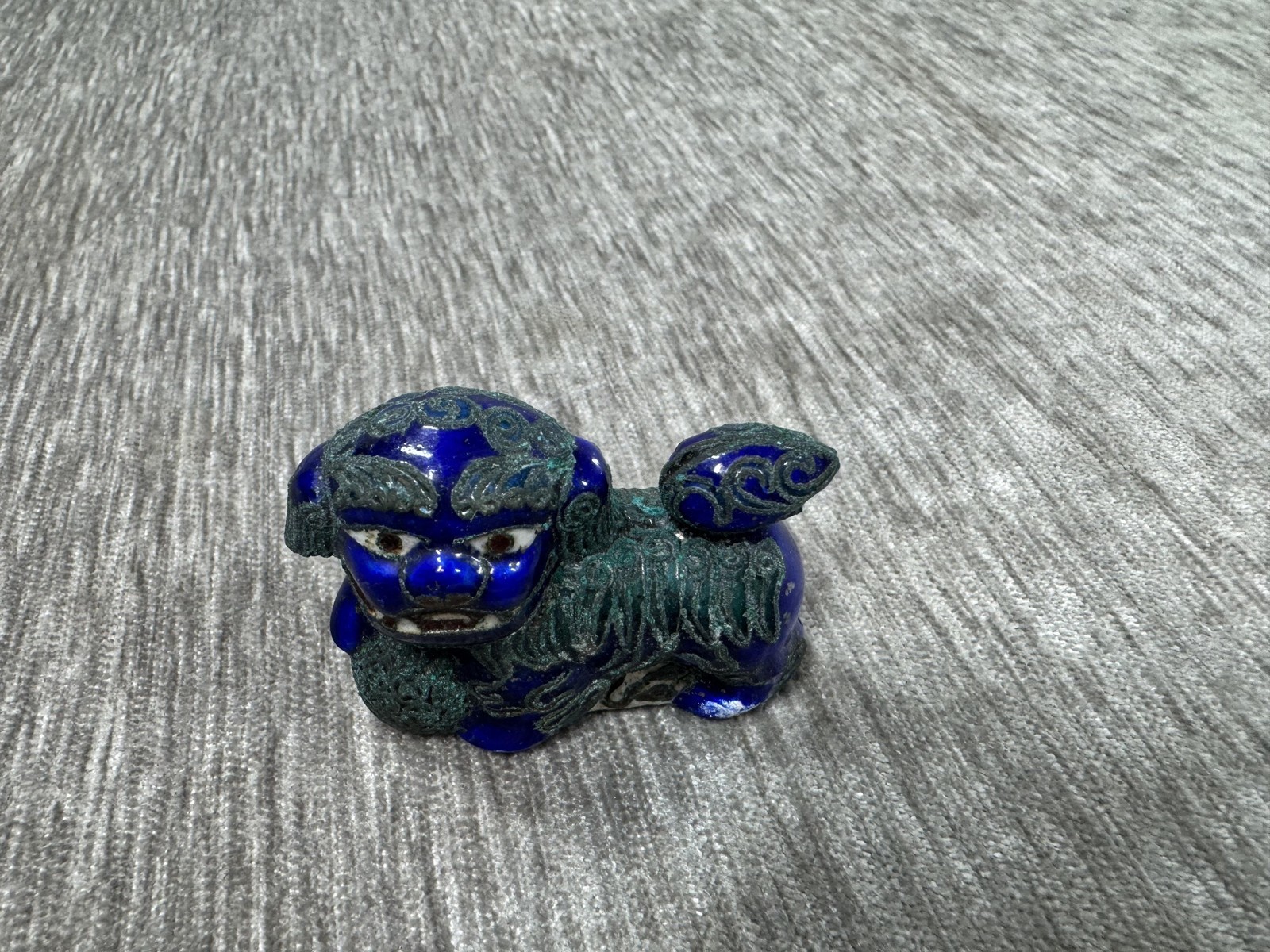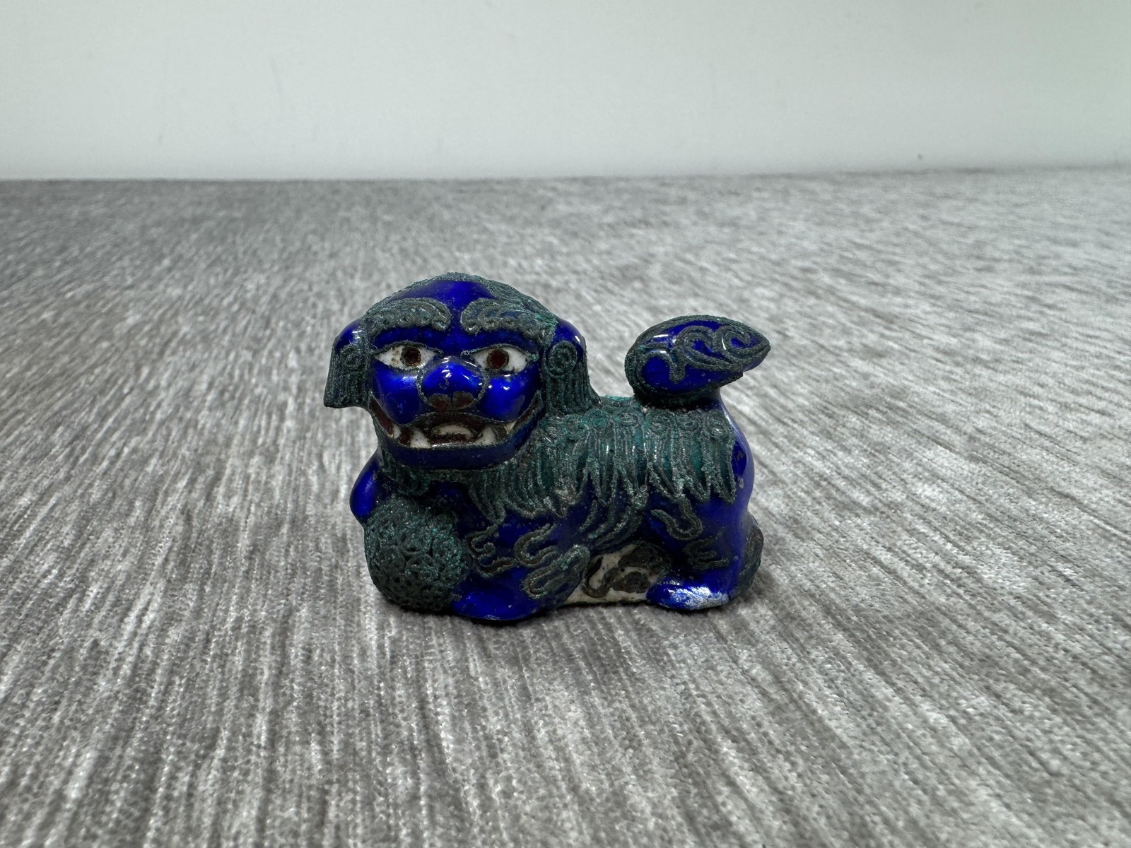 - Vintage Cloisonne Chinese Foo Dog Guardian Lion Figurine Statue Blue Green AS-IS