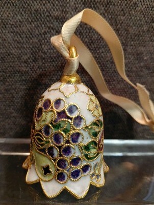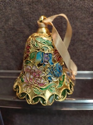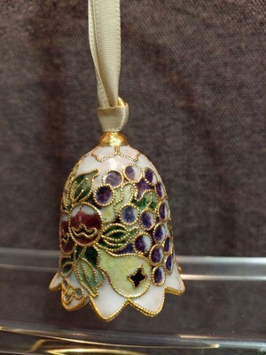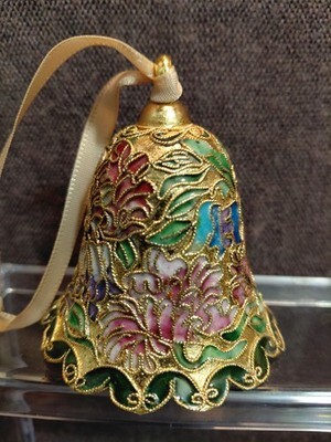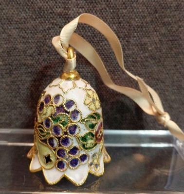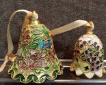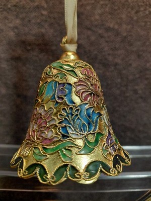- Vintage Cloisonne Enamelware Christmas Bells Ornament Floral 2pc Set