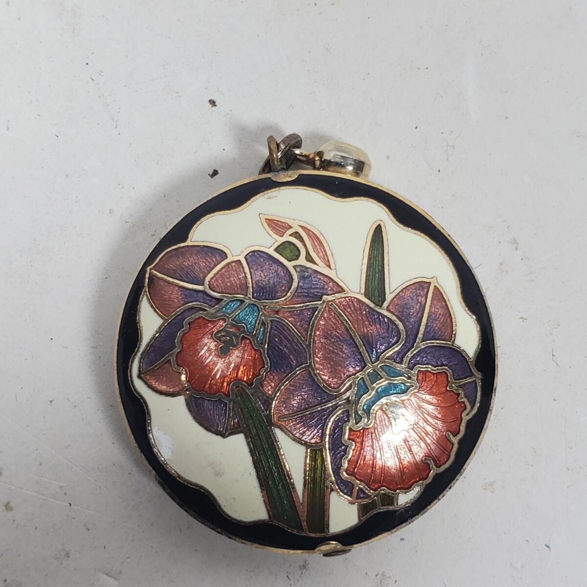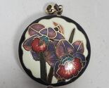 - Vintage Cloisonne Pendant 1.25 Inch Floral w/ Black Trim