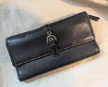 - Vintage Coach Cuero Negro Cartera Plegable Plata Hebilla 20.3x10.2cm