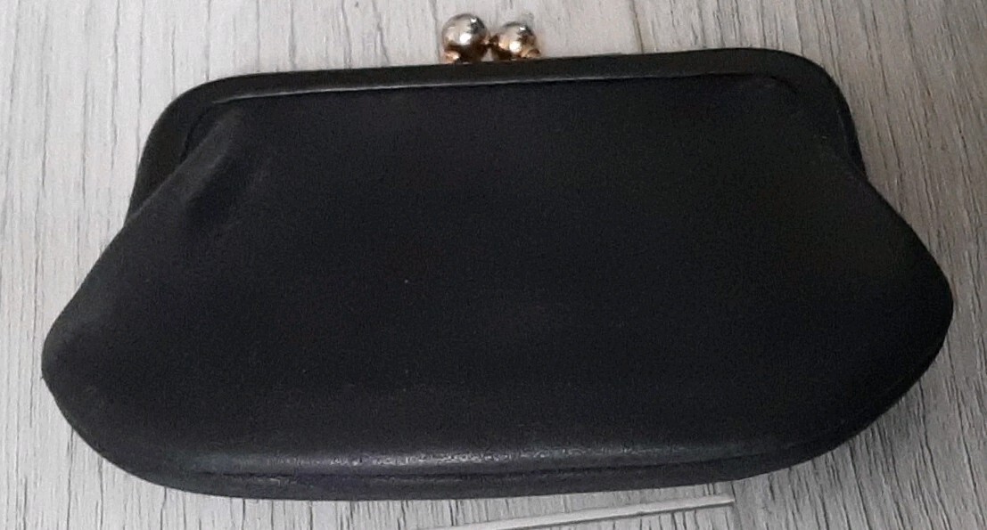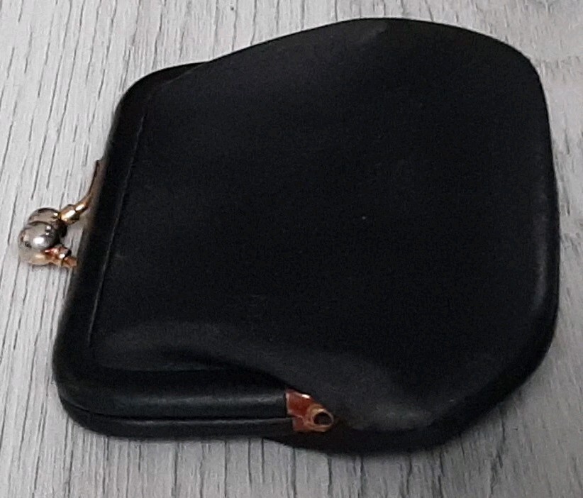 - Vintage Coach Kisslock Coin Pouch Black Leather Change Purse A3