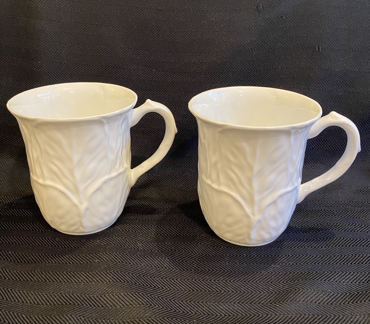 - Vintage Coalport Countryware Set Of Two White Cabbage Bone China Mugs