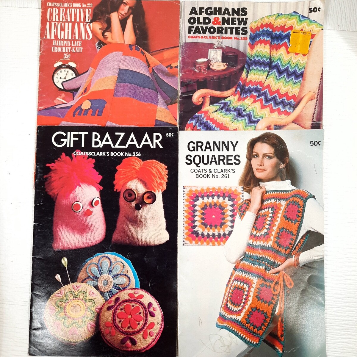 Vintage Coats Clark's Books Creative Afghans Gift Bazaar Granny Squares 1970s