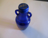 This vintage cobalt blue bottle with two handles is a rare find from the 1980-90's, perfect for collectors of modern bottles. The unique design of the Luna Cafe bottle with a lid makes it a standout piece in any collection. The bright blue color adds a pop of color to any display, and the two handles give it a distinctive look that sets it apart from other bottles. Its origin is unknown, but its vintage charm is undeniable, making it a valuable addition to any collector's stash. It measures just a little over 7" high weighs 12 oz.