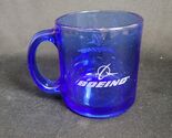 - Vintage Cobalt Blue Glass Coffee Mug Boeing Made In USA 4” Width