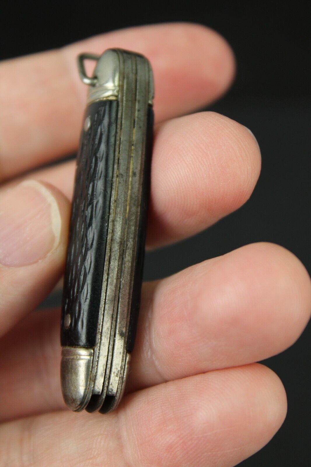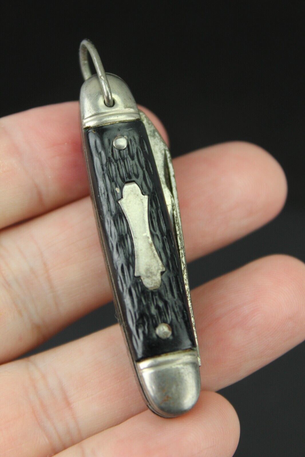 COLONIAL USA double blade black handle pocket knife....with loop.