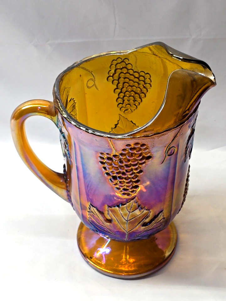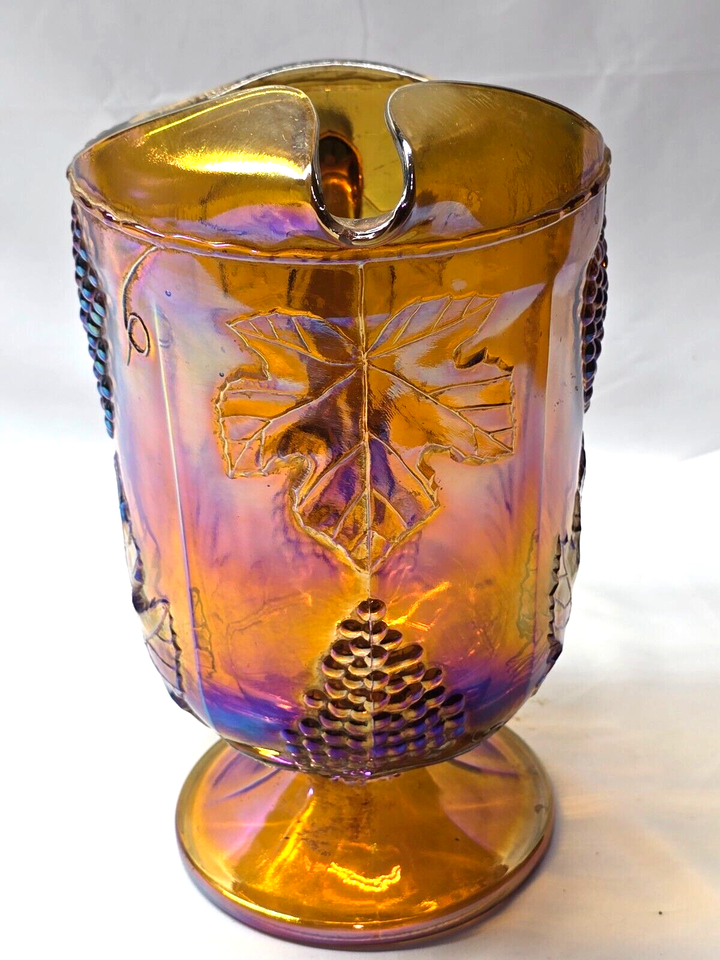 - Vintage COLONY 64oz Pitcher HARVEST CARNIVAL MARIGOLD Grapes Leaves 9.75" Footed