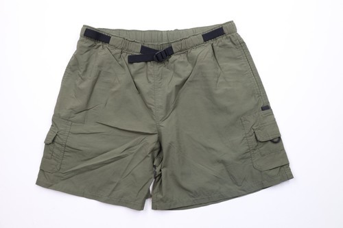 - Vintage Columbia Womens Medium Spell Out Above Knee Belted Cargo Shorts Green