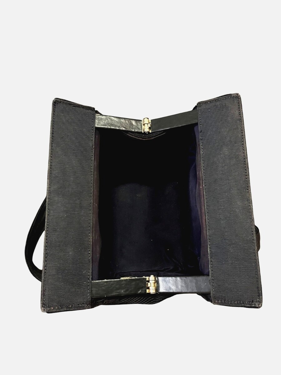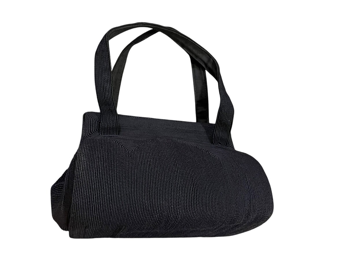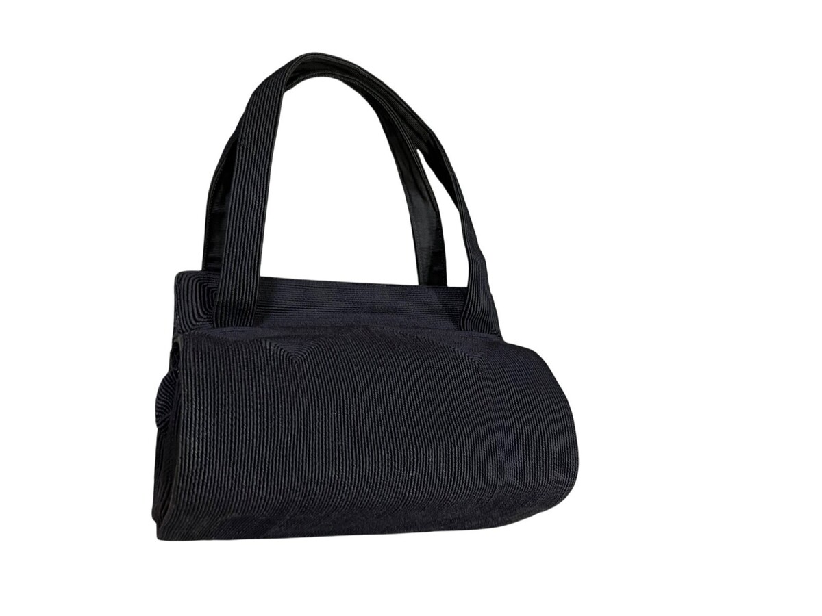 - Vintage Corde Handbag 1940s Black Rayon Structured Top Handle Bag Used