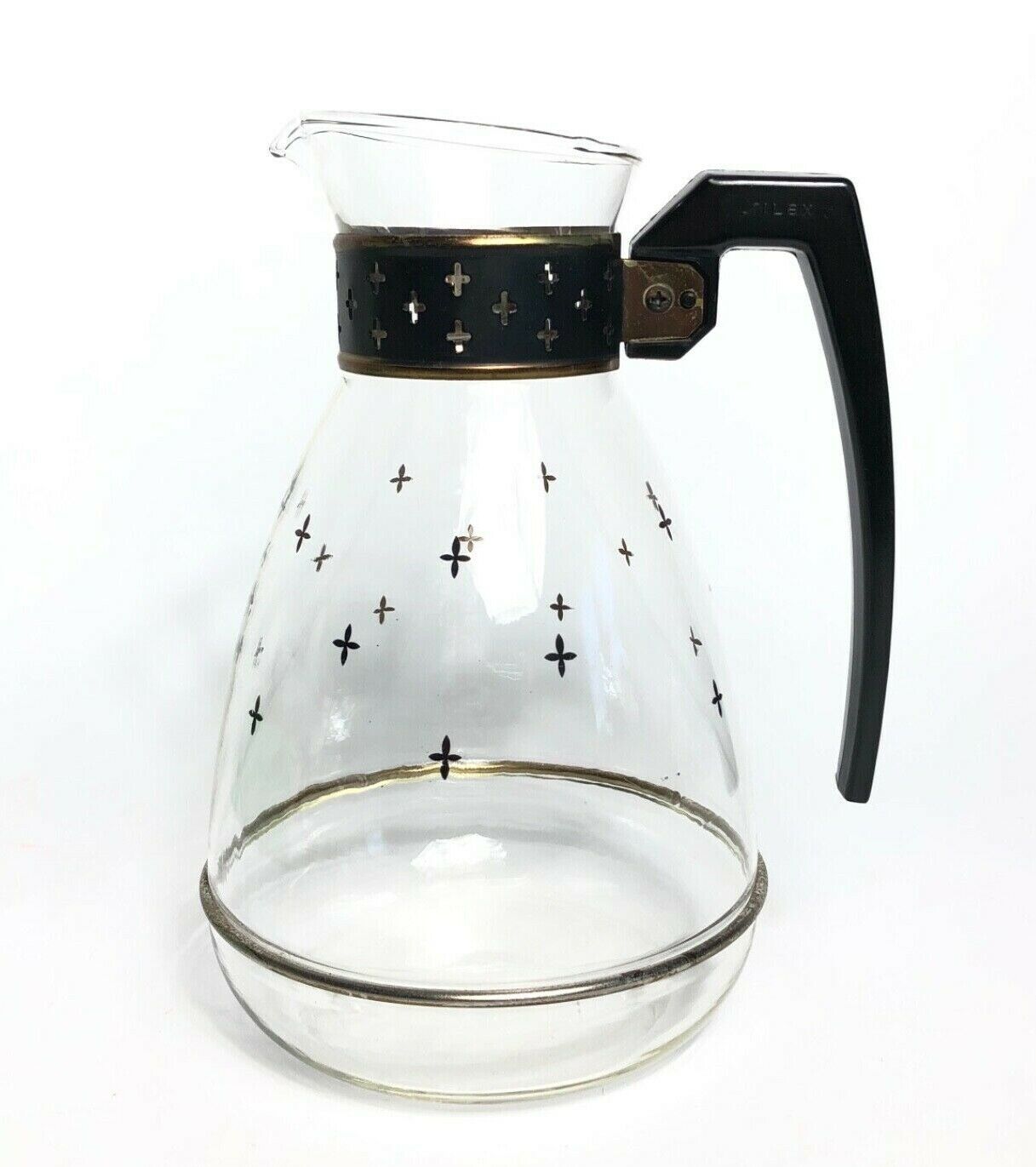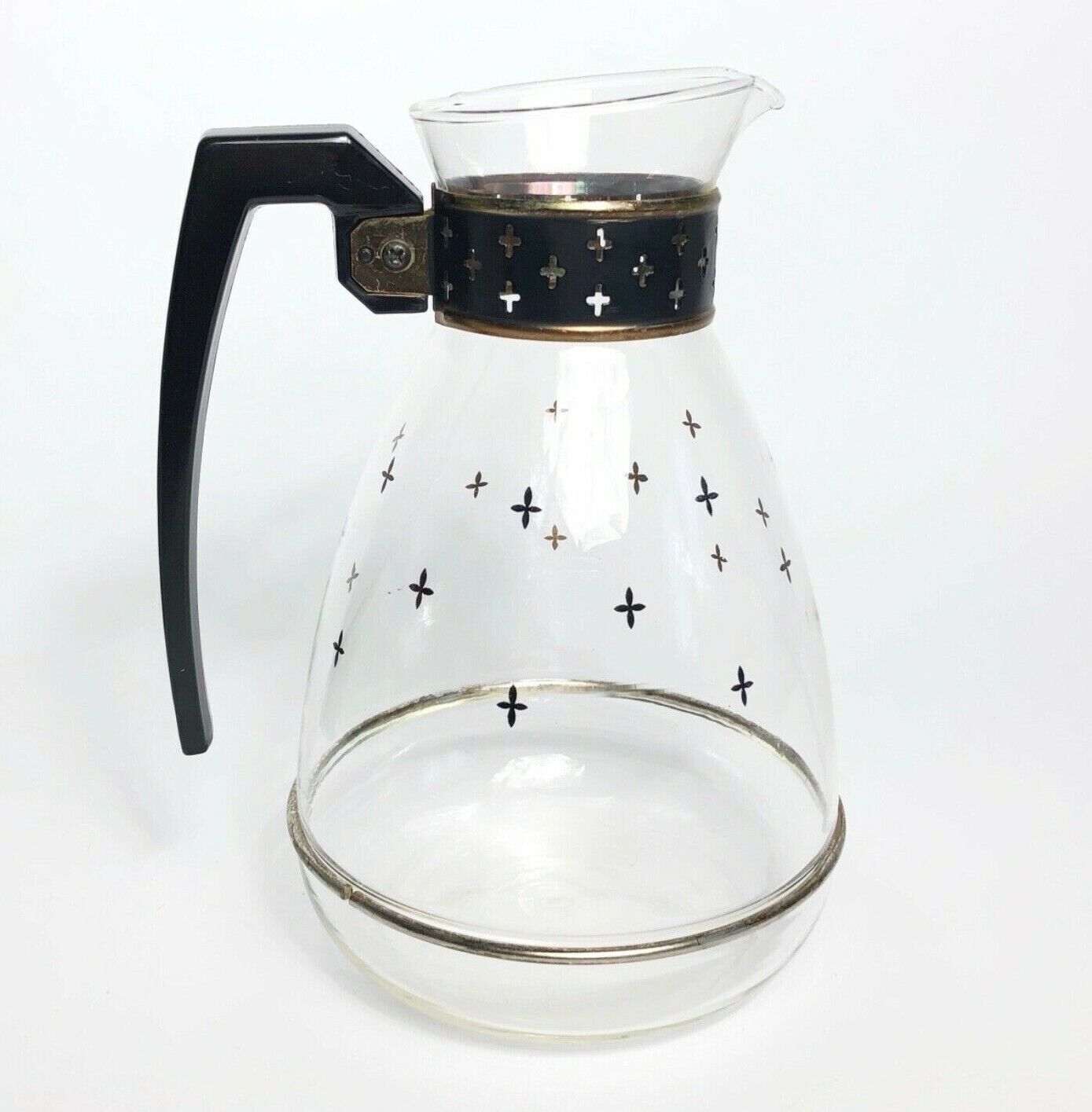 - Vintage Corning Silex Coffee Pot Carafe Black & Copper Star Design 6 Cup