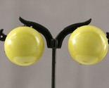 Vintage Costume Jewelry Olive Green Bakelite Screwback Plastic Clip Earrings 1" wide dome. Yellow/green tone. No smoke or pet odor.