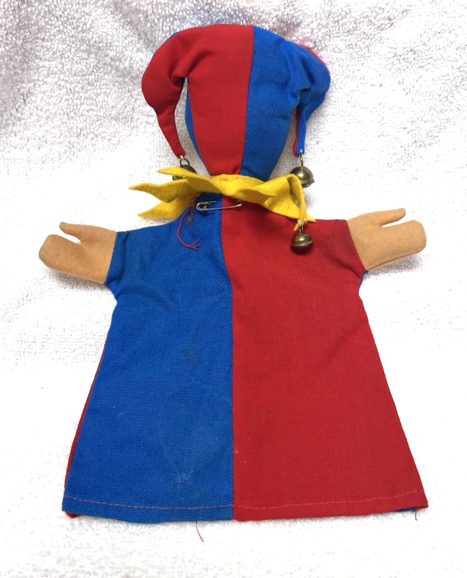 - Vintage Court Jester Hand Puppet Sculpted Felt Face Hand Painted w Jingle Bells