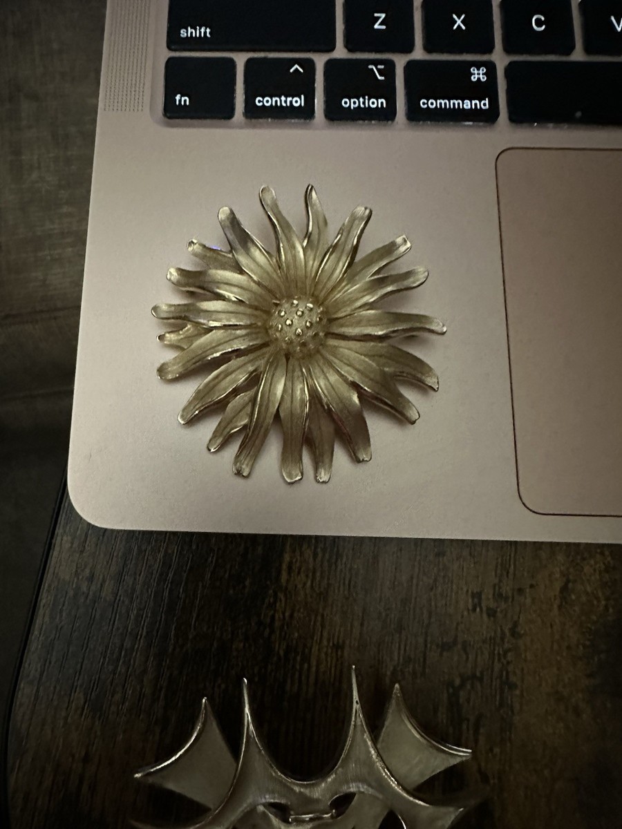 - VINTAGE CROWN TRIFARI SUNFLOWER BROOCH PIN SIGNED GOLD TONED