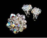 - Vintage Crystal Brooch & Earrings Jewelry Set Clear Aurora Borealis 1950S