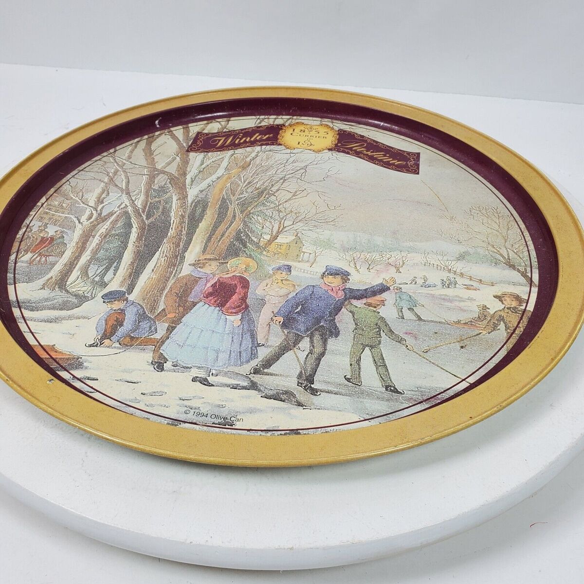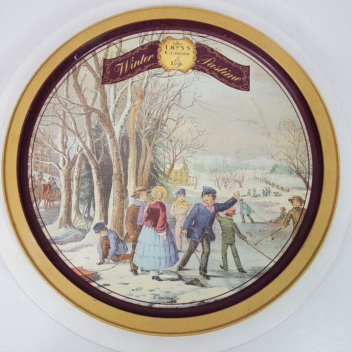 - Vintage Currier & Ives 1855 Winter Pastime Metal Plate 13 Inch