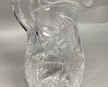 - Vintage Cut Glass Floral Crystal Pitcher - 8.5”H