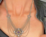 - Vintage DRAPED Amethyst Pearl Silver Festoon Necklace Bohemian Necklace