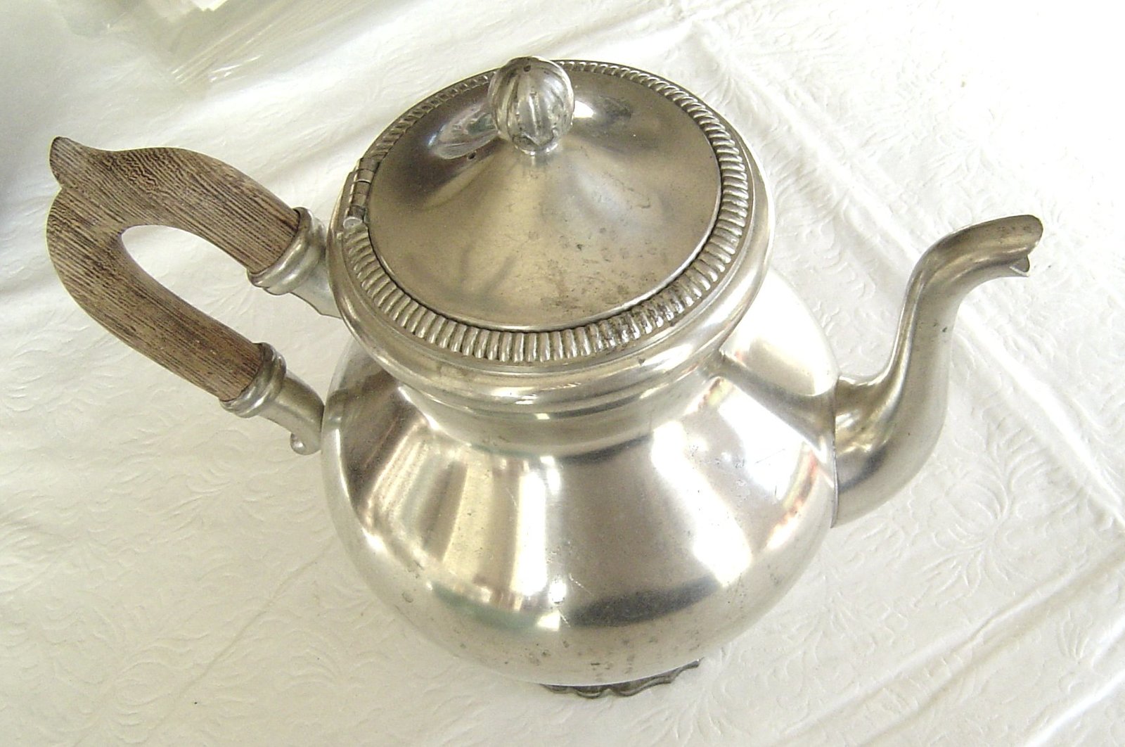 - Vintage Daalderop Royal Holland Pewter Wood Handle Tea Pot MCM
