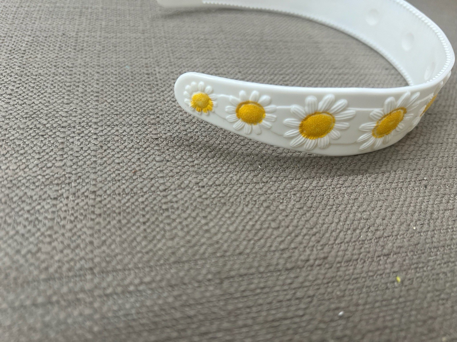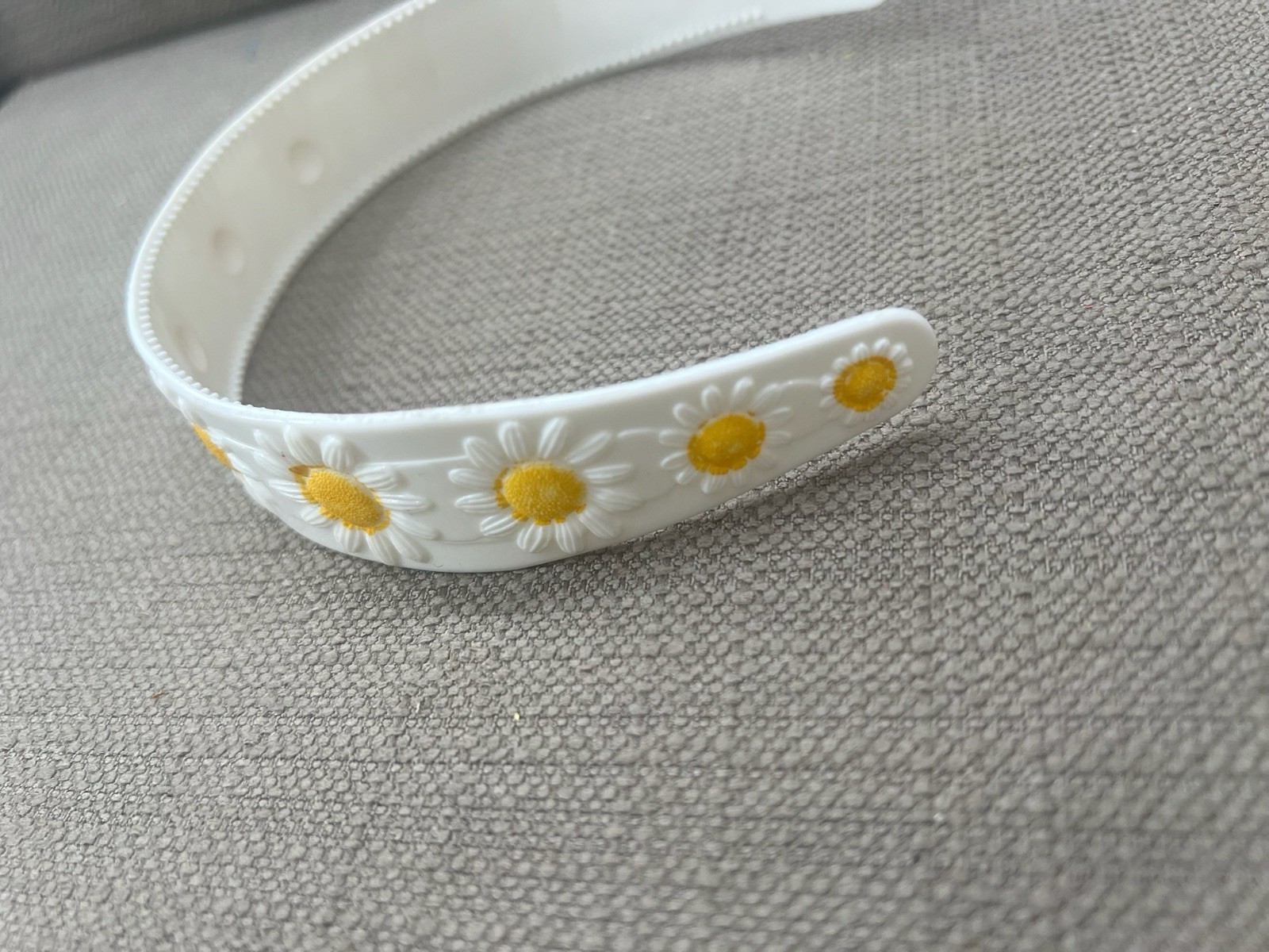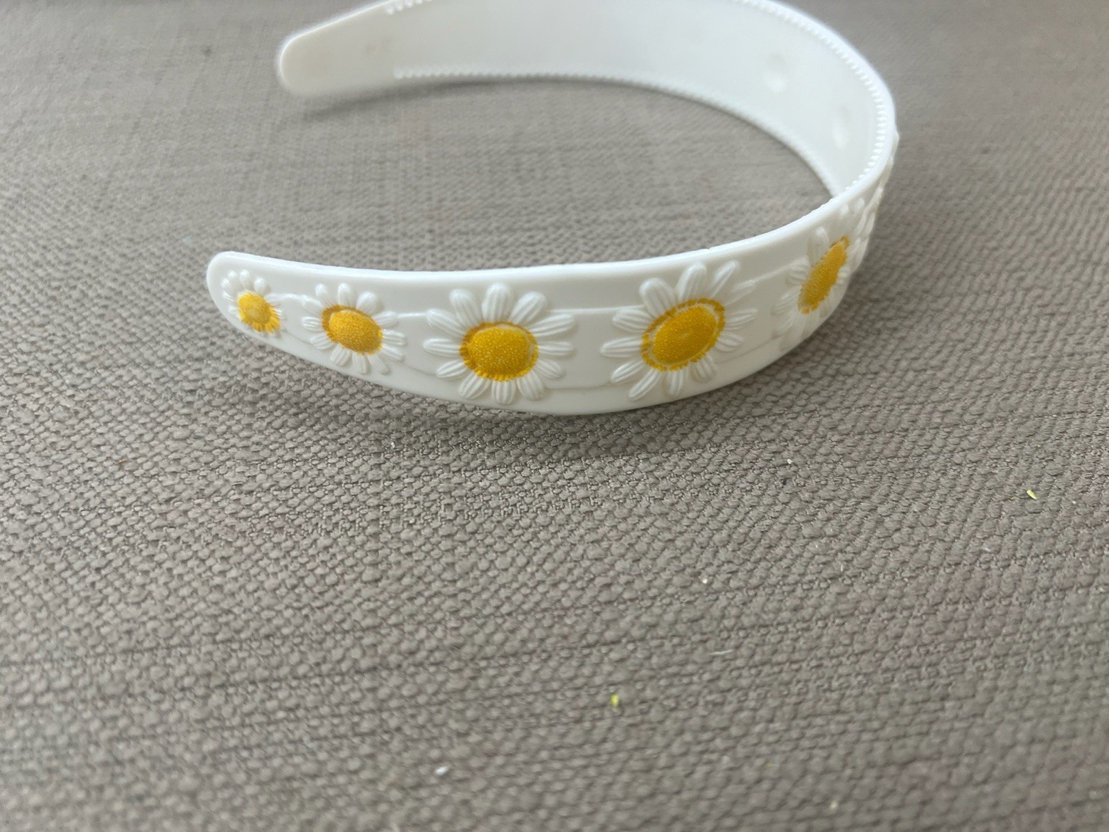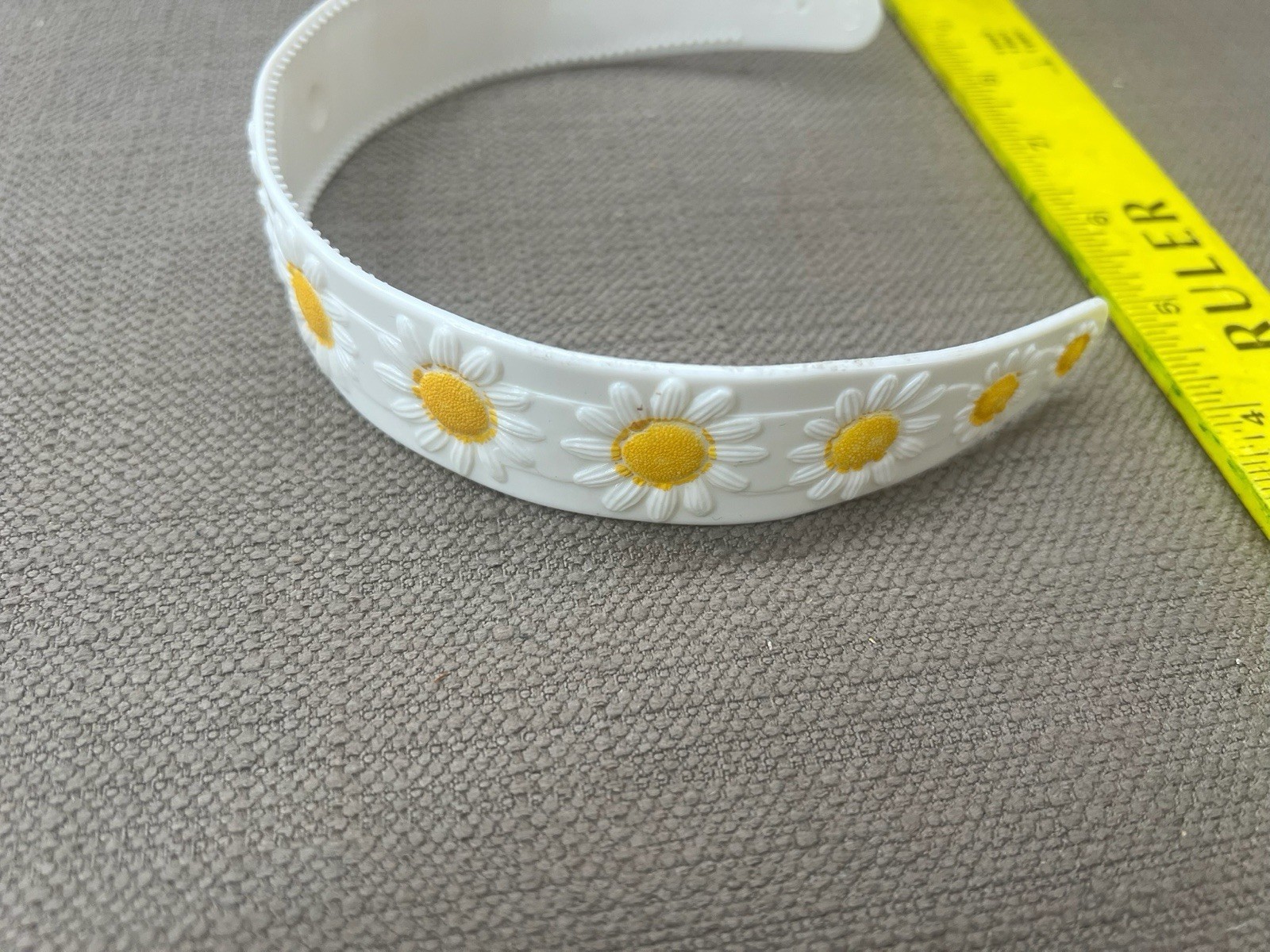 - Vintage Daisy Headband – Retro 1960s-70s Plastic White & Yellow Hair Accessory