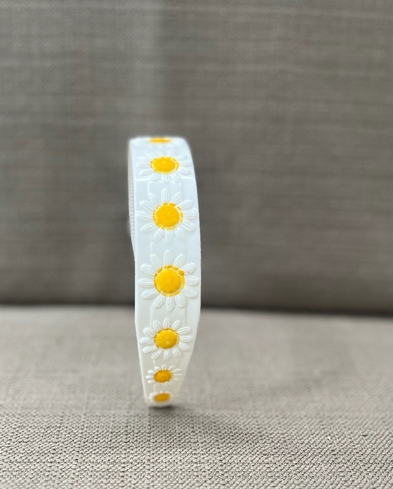 Adorable vintage plastic daisy headband featuring raised white petals and bright yellow centers in a cheerful, retro floral pattern. This piece perfectly captures the mod, pinup, and rockabilly vibe of the 1960s?70s.