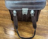 - Vintage Dark Leather Camera Bag Hard Cover With Buckles And Strap