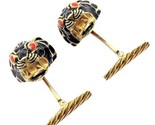 Vintage! David Webb 18k Yellow Gold Black Enamel Lion Cufflinks