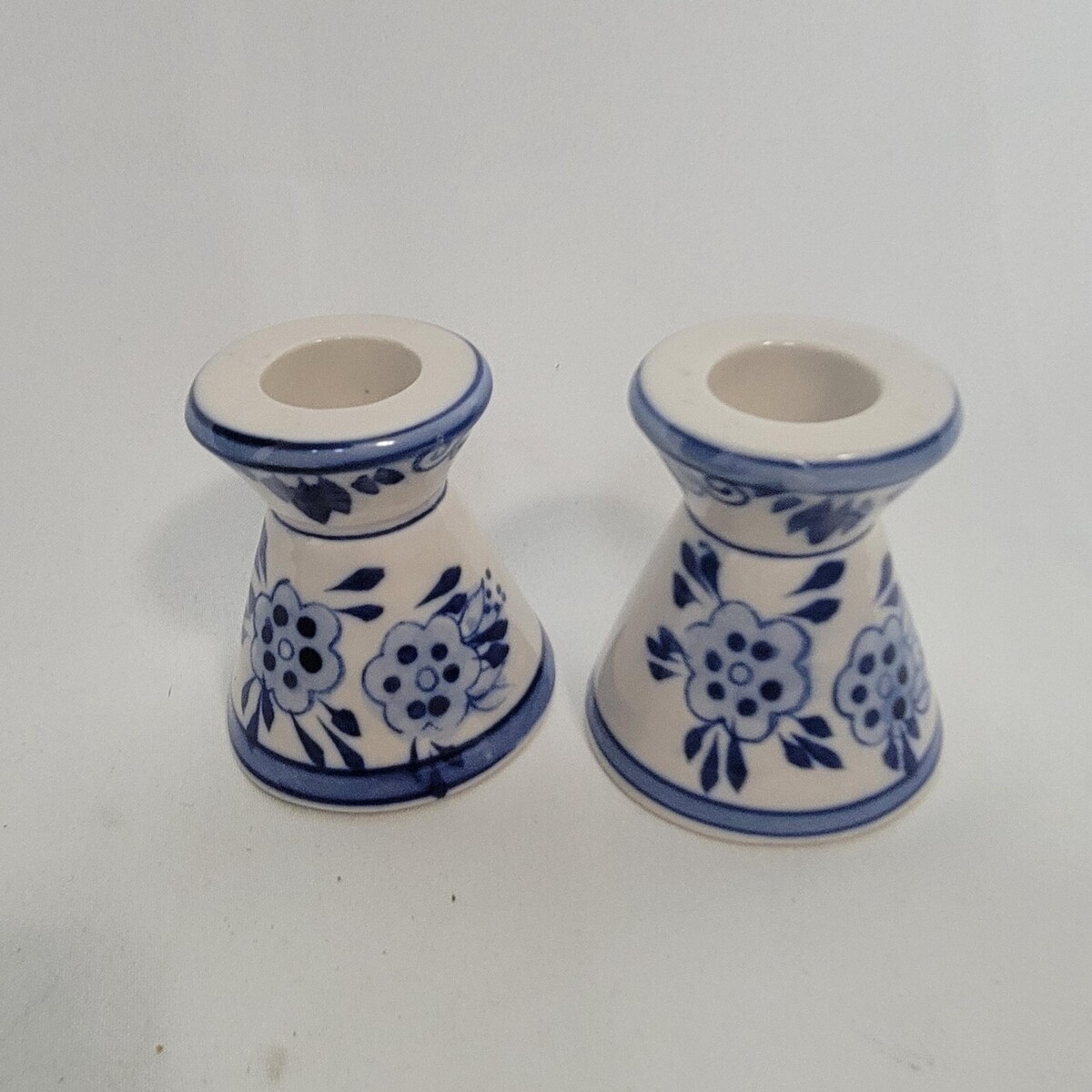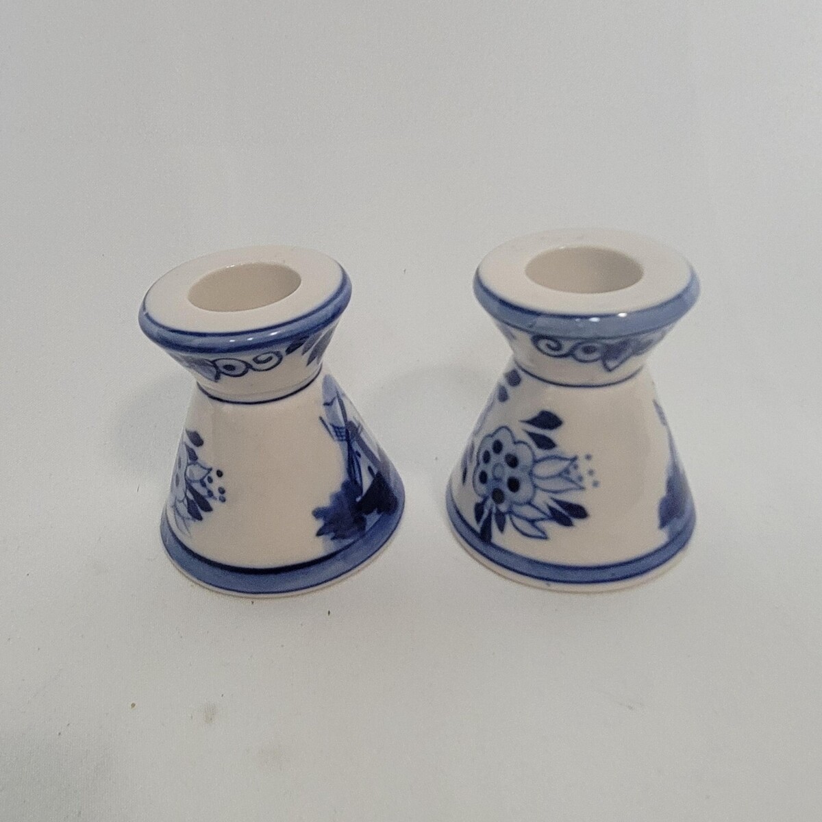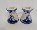 - Vintage Delft Blue Windmill Hand Painted Ceramic Taper Candlestick Holders 2.5"
