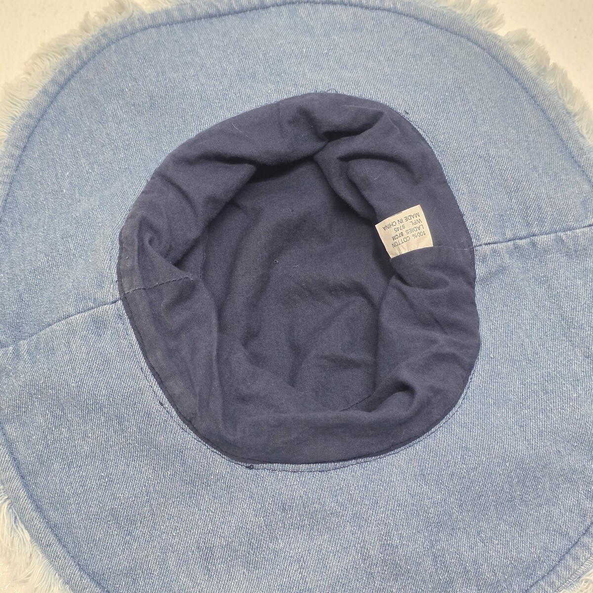 - Vintage Denim Fringe Womens Bucket Sun Hat Size 57 cm