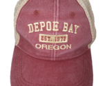 Vintage Depoe Bay Oregon Coast Mens OSFA Trucker Hat Cap Red Beige ESY