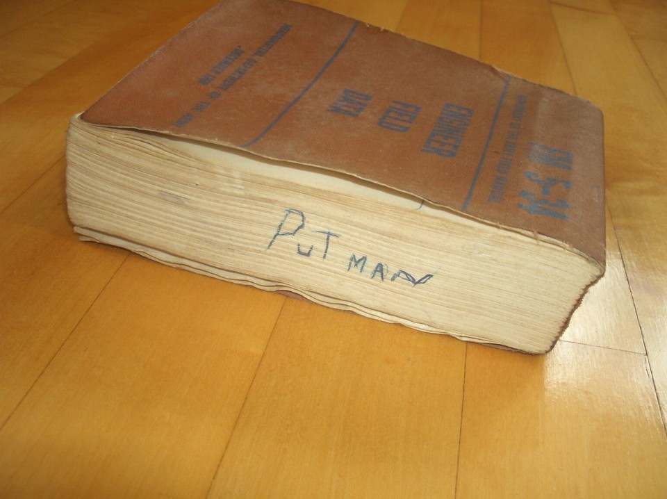The product is a vintage Department of the Army Engineer Field Data FM5-34 manual from December 1969. The manual does have wear tear. Writing on the sides of the manual and the first page. No writing anywhere else. Front cover a little curled. A couple of pages stuck together, only about 1/2".