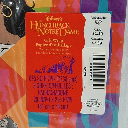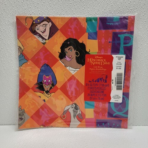 Vintage Disney Hunchback of Notre Dame Gift Wrap 8 1/3 Sq Ft- Brand New NOS. Images show actual item that will ship.