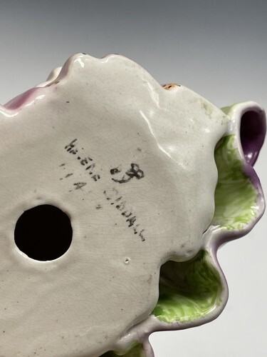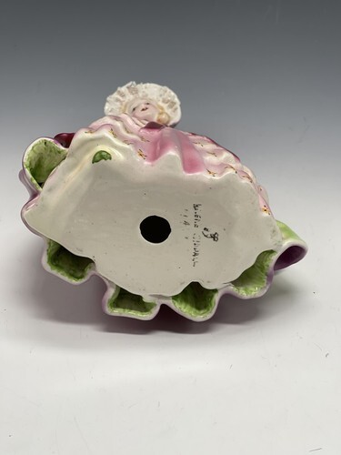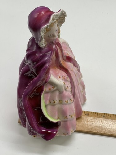 The dresden around bonnet of hat has chipping, no other chips or issues seen. Beautiful piece and I can't make out the wording on bottom, so maker is unknown.