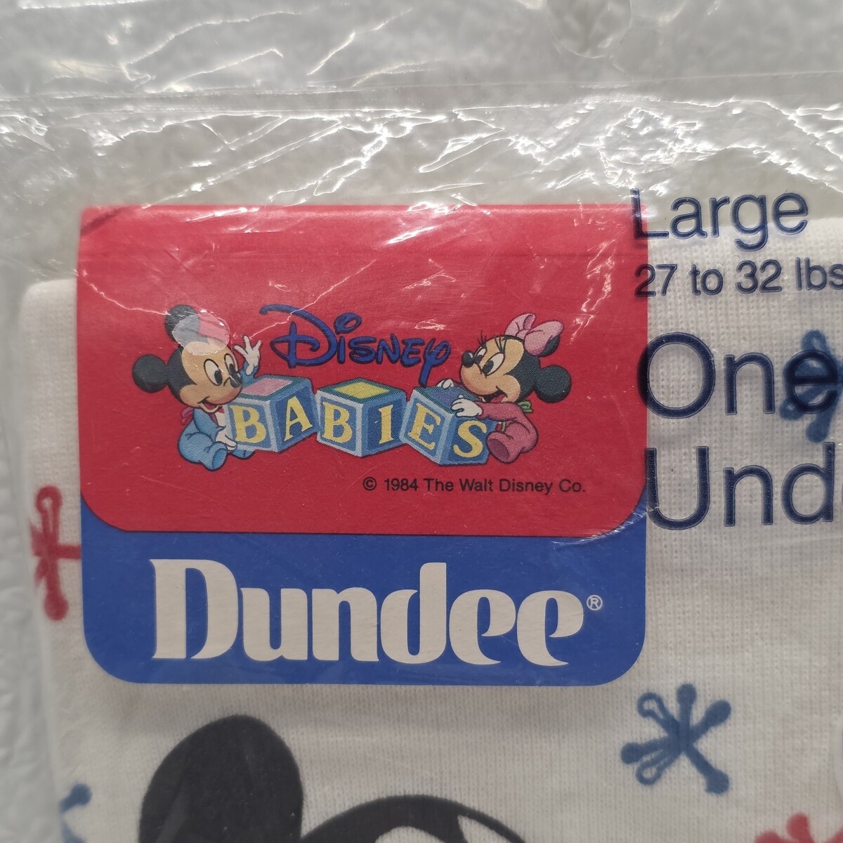 Vintage 1984 Dundee Disney Babies Large One Piece Underwear Bodysuit Mickey Minnie. New Old Stock. Size is Large or 27-32 lbs. Images show actual item that will ship.