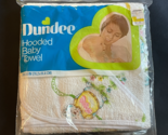 Vintage new old stock in package Dundee hooded baby bath towel. Measures 30 x 36. Made in USA of 90% cotton 10% polyester blend woven terrycloth. Super cute bear and floral pattern. Has original Jamesway price tag sticker on package. Please see all photos. We are a smoke free, pet friendly home. Have a great safe day!