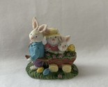- Vintage Easter Bunny Rabbit Family on Wheelbarrow Figurine - e883