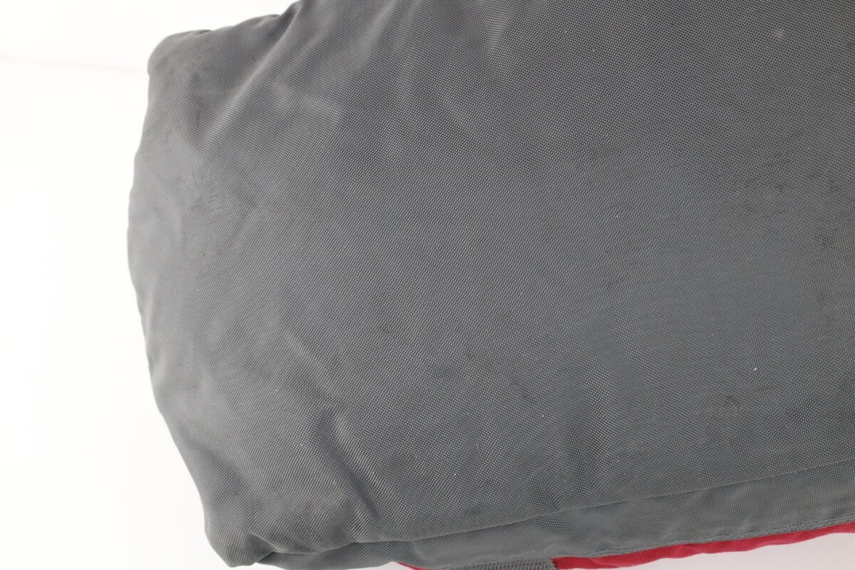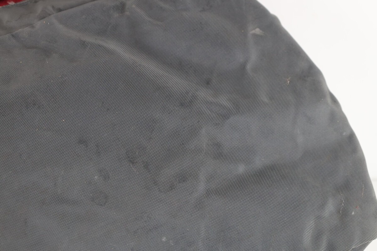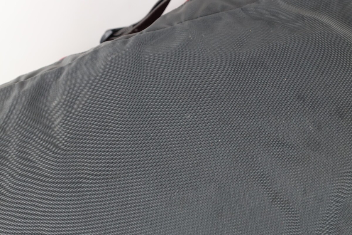 Blemishes throughout inside and outside. Right side of front pocket zipper broken but the other zipper works so it still closes