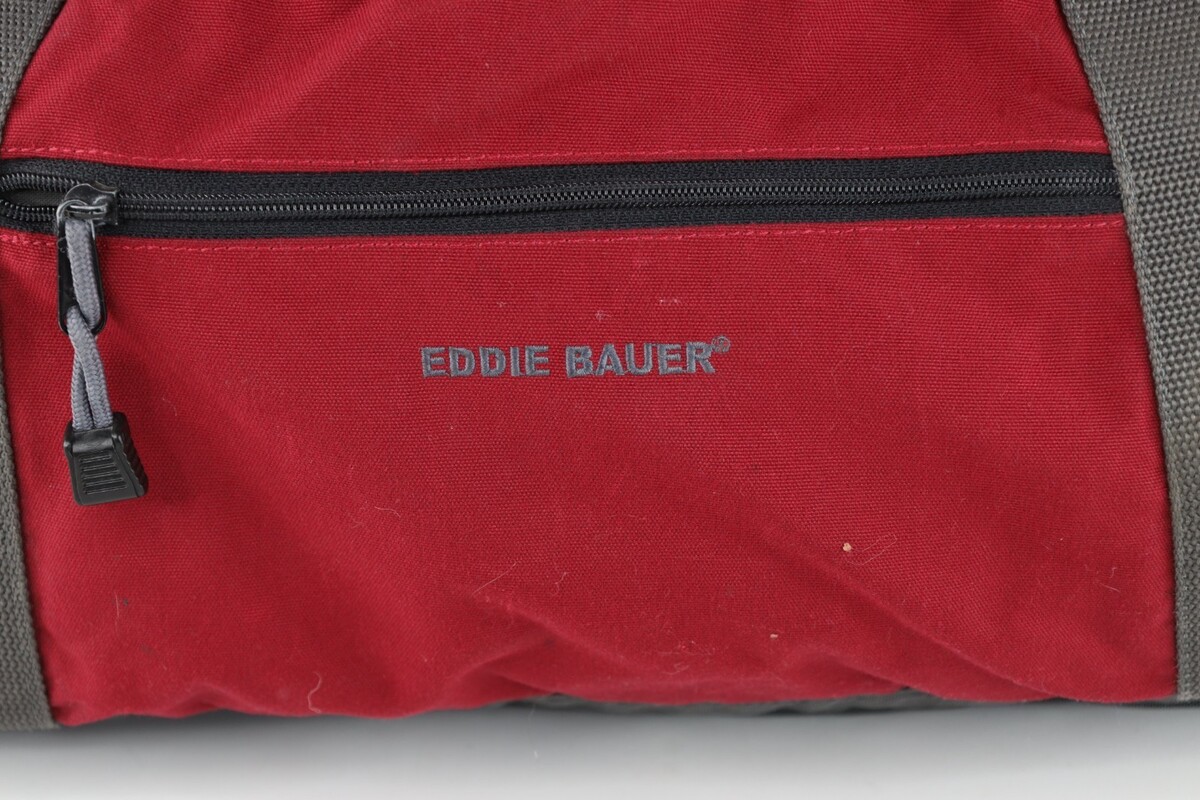 - Vintage Eddie Bauer Distressed Spell Out Handled Duffel Bag Carry On Gym Red